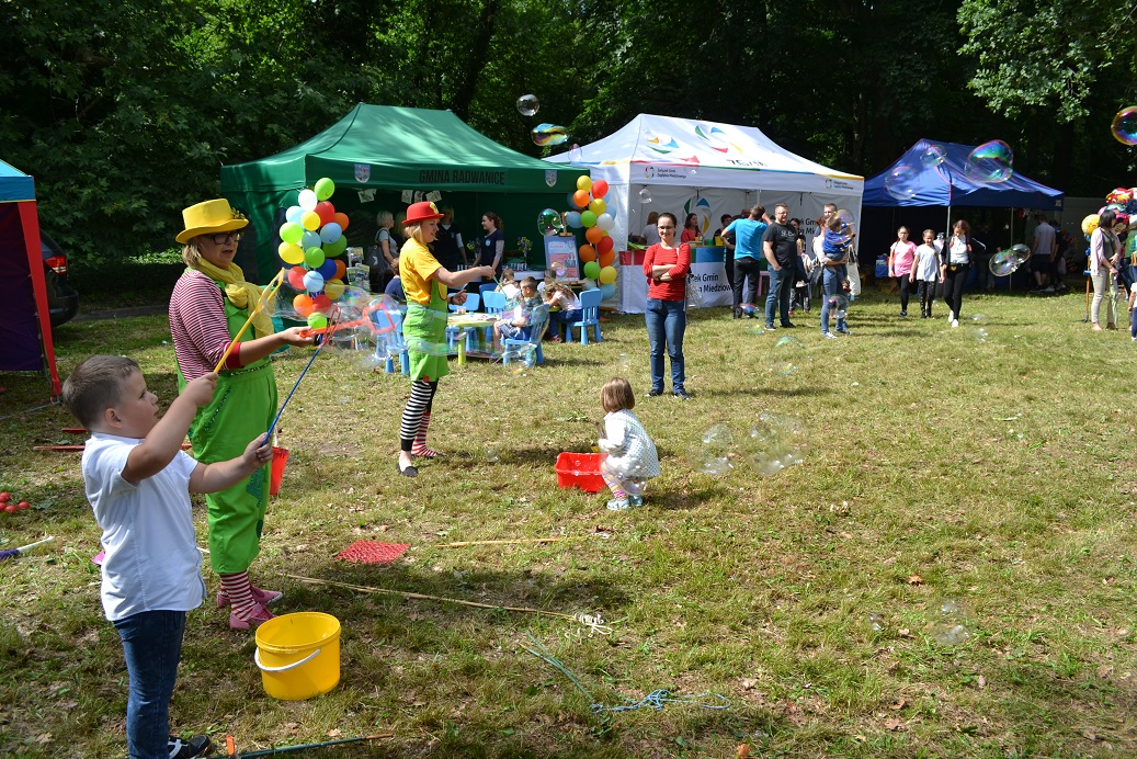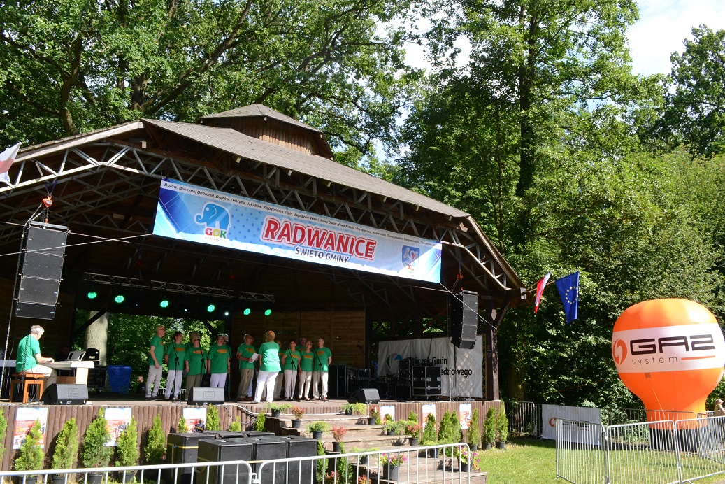 Punktualnie o 15.00 Wójt Gminy Radwanice, pan Paweł Piwko, powitał wszystkich widzów i oficjalnie otworzył Święto. Zaraz potem nadszedł czas by na scenie zaprezentowały się lokalne grupy artystyczne. Zespół Szkolno-Przedszkolny reprezentowało kilka zespołów: „Żabki”, „Smerfy”, „Gwiazdeczki”, Chór „Rybałci” oraz Zespół Tańca Nowoczesnego. „Buczacza” ze Szkoły Podstawowej w Buczynie popisała się swoim talentem tanecznym. Wiktoria Fraczek, Kamila Mazur i Aleksandra Stemplewska to młode wokalistki, uczennice i absolwentki Gimnazjum w Radwanicach. Zespół taneczno-wokalny „Frajda”, funkcjonujący przy GOKu, zaprezentował się w trzech układach tanecznych oraz piosence. Po występach dzieci i młodzieży, na scenie pojawiła się dojrzalsza grupa, ale młoda duchem i temperamentem, czyli Klub Seniora „Optymiści”. O 17.00 dzieci mogły wziąć udział w niezwykłym pokazie cyrkowym – żonglowanie, chodzenie na szczudłach to tylko niektóre elementy Eduardo Show. Cyrkowiec swoimi sztuczkami i dobrą zabawą zaczarował wszystkich! Następnie odrobinę „magii” organizatorzy zaserwowali dorosłym. Jurij Mokriszczew, znany artysta, zapraszał widzów do udziału w swoim programie „HipnoShow”. Wejście na scenę wymagało od ochotników sporo odwagi, bo zostali poddani trudnym próbom, np. chodzeniu po szkle czy hipnozie. Ten występ na pewno zostanie w pamięci publiczności na długo. Potężną dawkę dobrego humoru uczestnikom imprezy dostarczył jeden z najbardziej znanych i lubianych artystów w Polsce, aktor charakterystyczny, kabareciarz, czyli CEZARY ŻAK. Wybuchające co chwilę salwy śmiechu to najlepsza recenzja programu. Pan Cezary po występie spotkał się z fanami, więc każdy mógł uzyskać autograf i wspólne zdjęcie z aktorem. Niekwestionowaną gwiazdą wieczoru był zespół Piękni i Młodzi, który przyciągnął do Parku prawdziwe tłumy. Podczas koncertu wielbiciele disco polo usłyszeli największe hity grupy, takie jak „Ona jest taka cudowna” czy „Kocham się w Tobie”. Piękni i Młodzi zrobili prawdziwe show na scenie! Po koncercie publiczność pozostała w tanecznym nastroju. Znany i lubiany DJ RAFF dostarczył potężną dawkę hitów, przy której widzowie bawili się do późnej nocy. Przez cały dzień można było odwiedzać ciekawe i piękne stoiska, przygotowane przez: Urząd Gminy Radwanice, Związek Gmin Zagłębia Miedziowego, sołectwo Radwanice, sołectwo Przesieczna, sołectwo Sieroszowice, sołectwo Nowy Dwór, Koło Wędkarskie oraz Przemkowski Park Krajobrazowy z Przemkowa oraz Wzgórza Dalkowskie. Dodatkowo, dzieci przez kilka godzin mogły wziąć udział w warsztatach cyrkowych, robić gigantyczne bańki mydlane czy pomalować sobie buźkę. Dużą popularnością cieszyła się też Kawiarenka przygotowana przez Klub Seniora „Optymiści” W ramach Święta Gminy Radwanice odbył się Turniej piłki nożnej o puchar Wójta, który trafił do drużyny z Ostaszowa. Wójt wręczył również nagrody w Towarzyskiej lidze tenisa ziemnego. Najlepszym zawodnikiem okazał się Sławomir Bartnicki. Organizatorem Święta Gminy Radwanice był Gminny Ośrodek Kultury, natomiast sponsorami: Gmina Radwanice, Związek Gmin Zagłębia Miedziowego, Gaz System oraz Bank Spółdzielczy w Przemkowie. Wydarzenie nie mogłoby się odbyć bez wsparcia partnerów wydarzenia, a byli nimi: Klub Seniora „Optymiści”, Jednostka OSP – Łagoszów Wielki, Szkółka Drzew i Krzewów w Radwanicach, Park Krajobrazowy i Klub Wędkarski Przemków, Sołectwa należące do Gminy Radwanice, szkoły z terenu Gminy, Biblioteka Publiczna w Radwanicach.